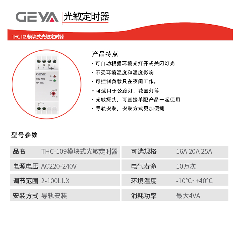 產(chǎn)品介紹:THC 109模塊式光敏感應(yīng)器不僅方便而且實用,它可以自動根據(jù)環(huán)境光打開或關(guān)閉燈光,也可以控制負(fù)載只在夜間工作。不受環(huán)境溫度和濕度影響,適用于公路燈、花園燈等。